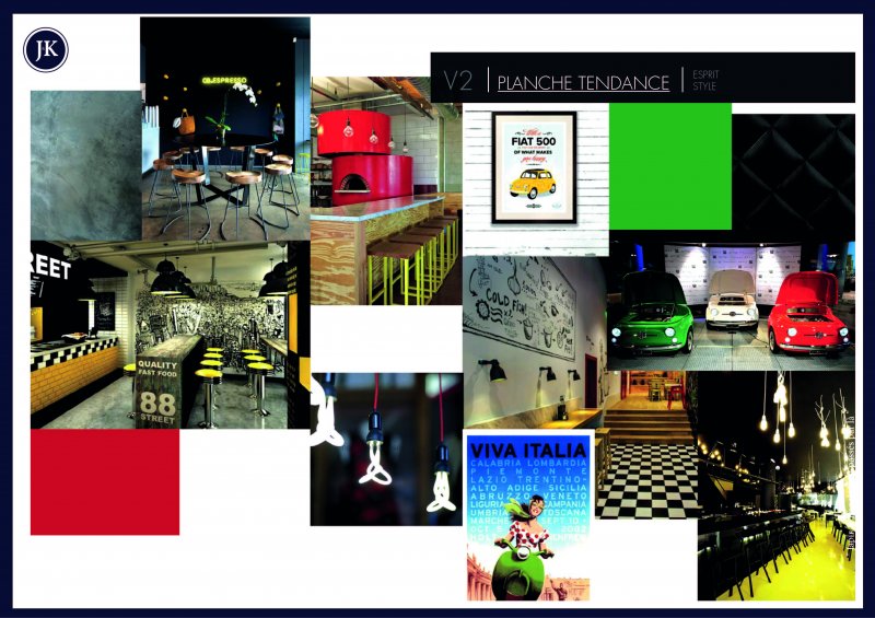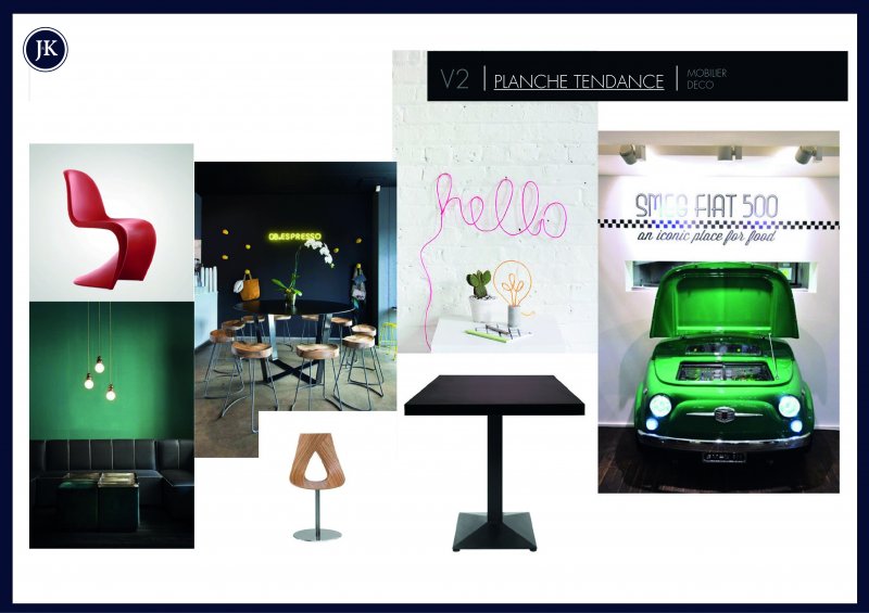 Souhaitant emménager dans une cellule neuve d'un immeuble moderne, notre client voulait avoir 2 propositions distinctes d'aménagement : nous avons créé l'ambiance "Rétro-chic " et "Moderne-Pop".