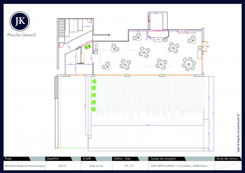 Le chef en constante évolution nous à sollicité pour adapter l'ambiance, le mobilier et les matériaux de son établissement pour être en accord avec son univers gastronomique afin de surprendre sa clientèle.