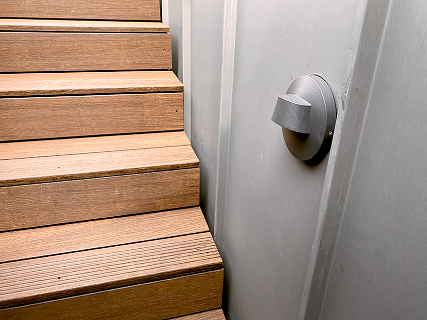 Création et rénovation d'une terrasse tropézienne. Nous avons agrandi l'espace en ouvrant la charpente, en ajoutant un bardage en zinc graphite et des lames de bambou pour le sol. Des spots extérieurs ont été installés le long des marches afin de créer un jeu de lumière.