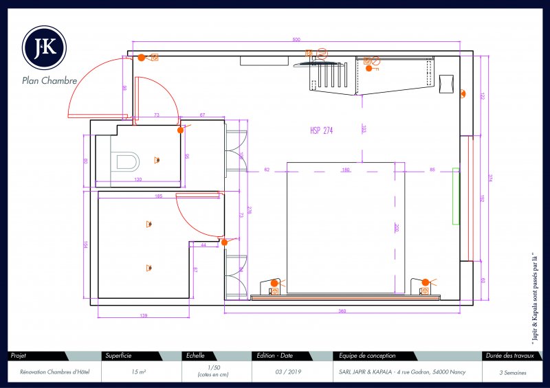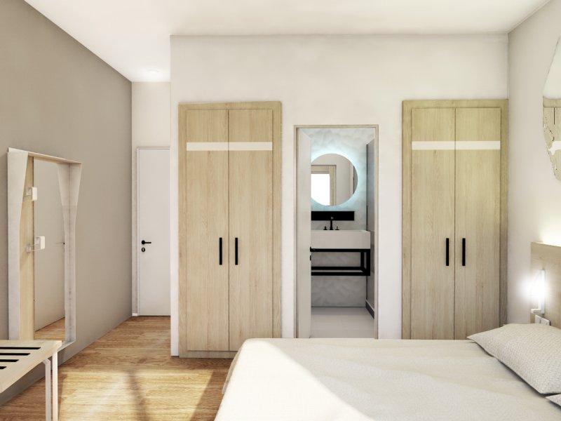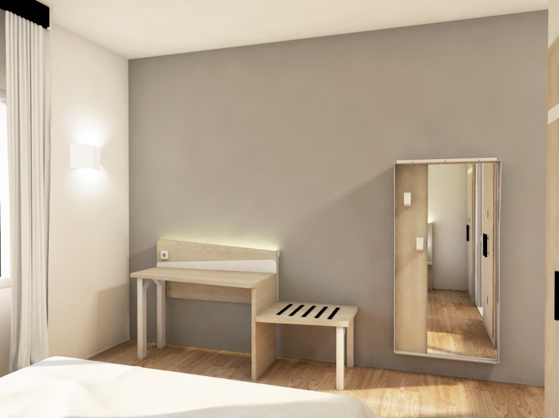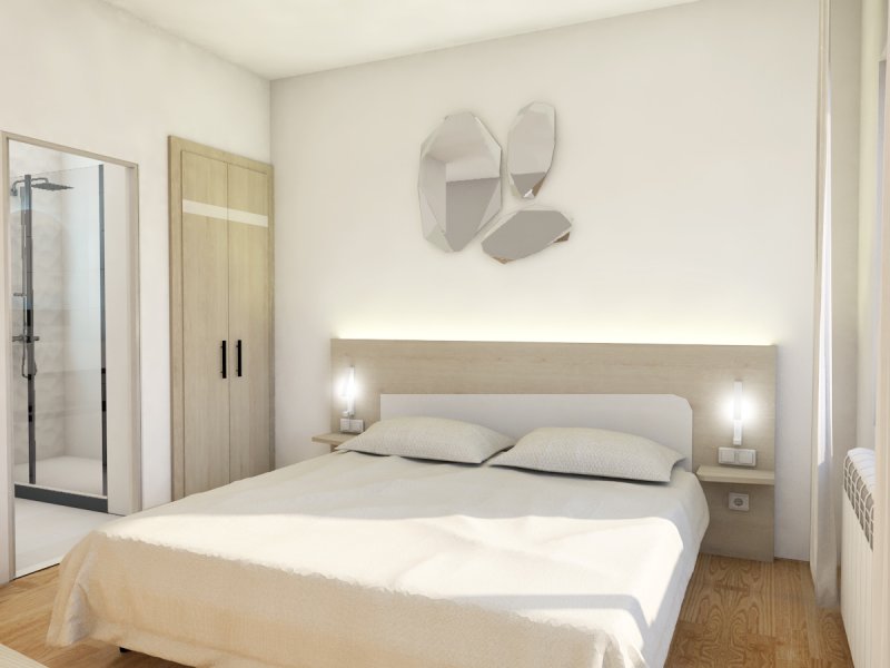 Notre client souhaitait redinamiser ses chambres vieillissantes, pour se faire nous avons retraité les espaces, les lumières ainsi que l'ensemble du mobilier pour répondre à une offre standard.