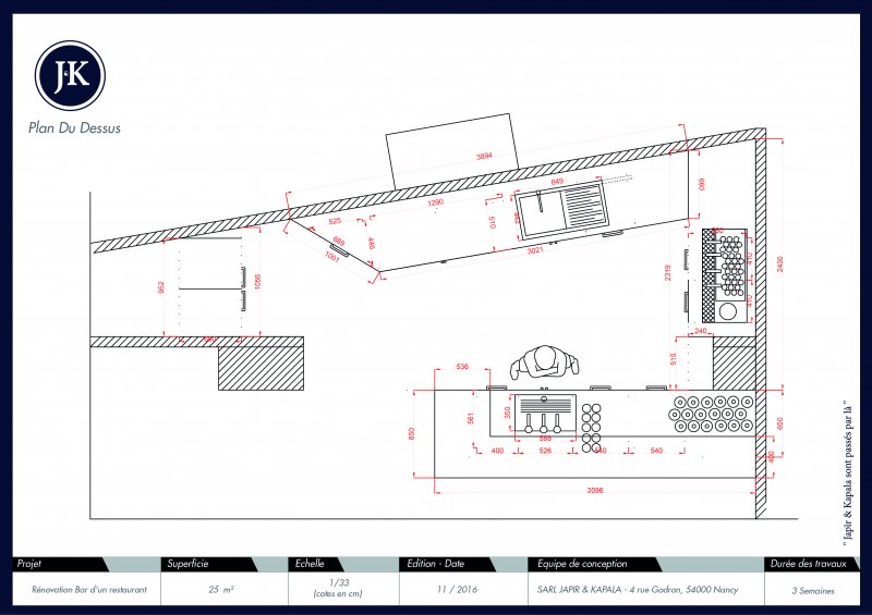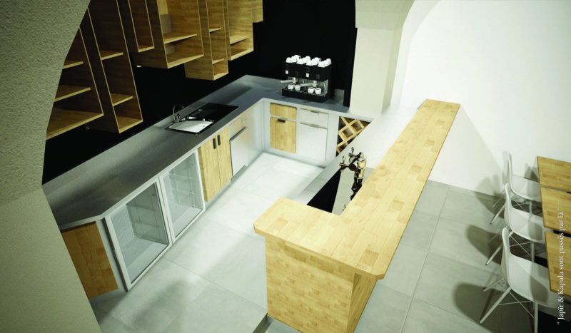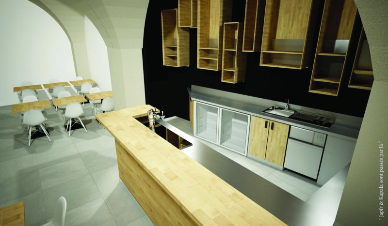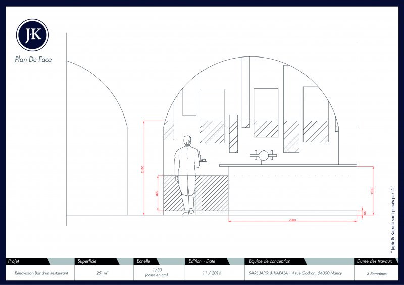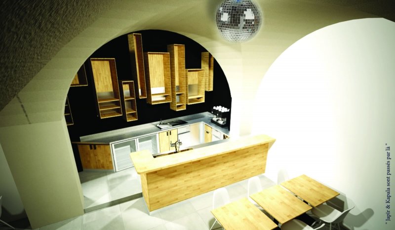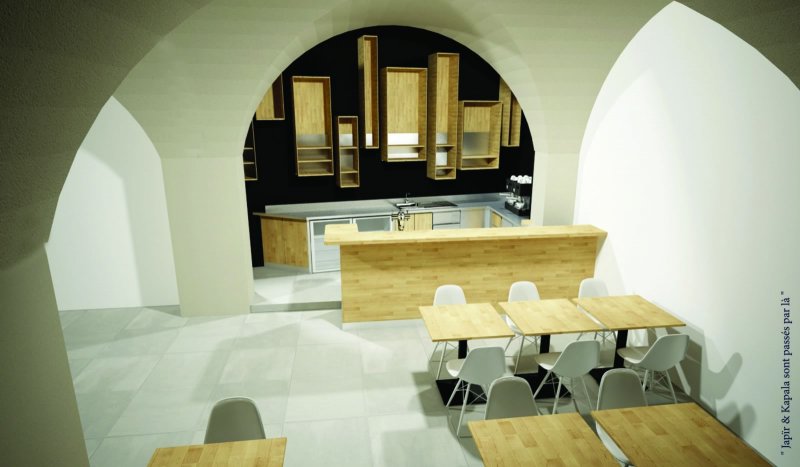 "Une ancienne école à transformer en pizzeria, Japir et Kapala sont là !". Bénéficiant d'une hauteur exceptionnelle, nous avons apporté un soin tout particulier au traitement des lumières mettant en valeur les voûtes. Aménageant le bar dans sa verticalité grâce à des éléments en bois massif hauts, nous avons su respecter le caractère unique de cet établissement.