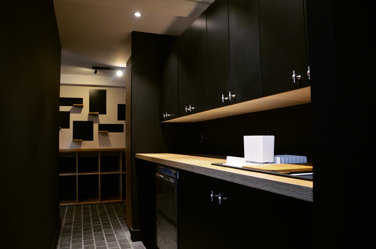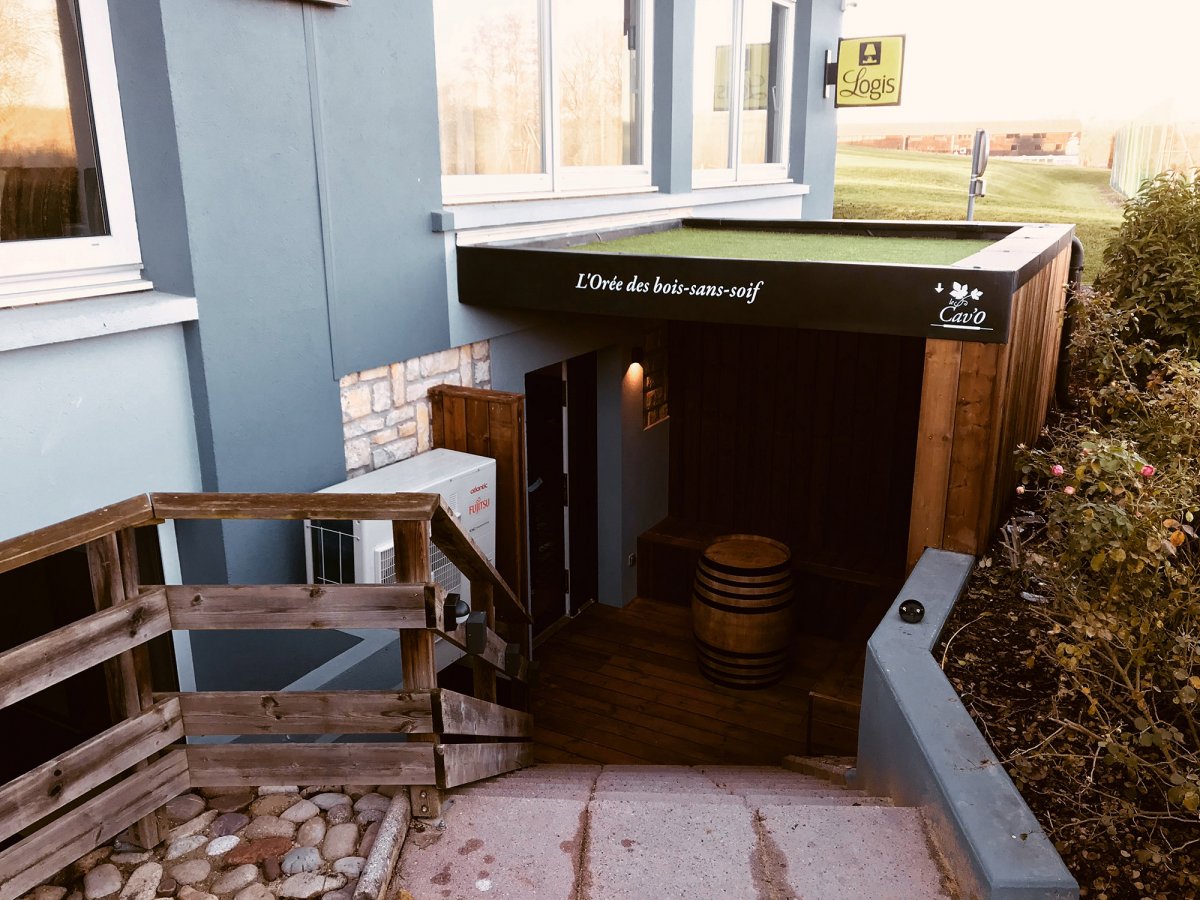 Aménagement d'une ancienne salle de sport d'un hôtel en cave à vin.