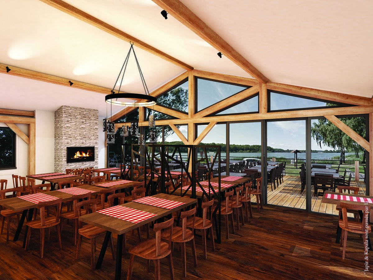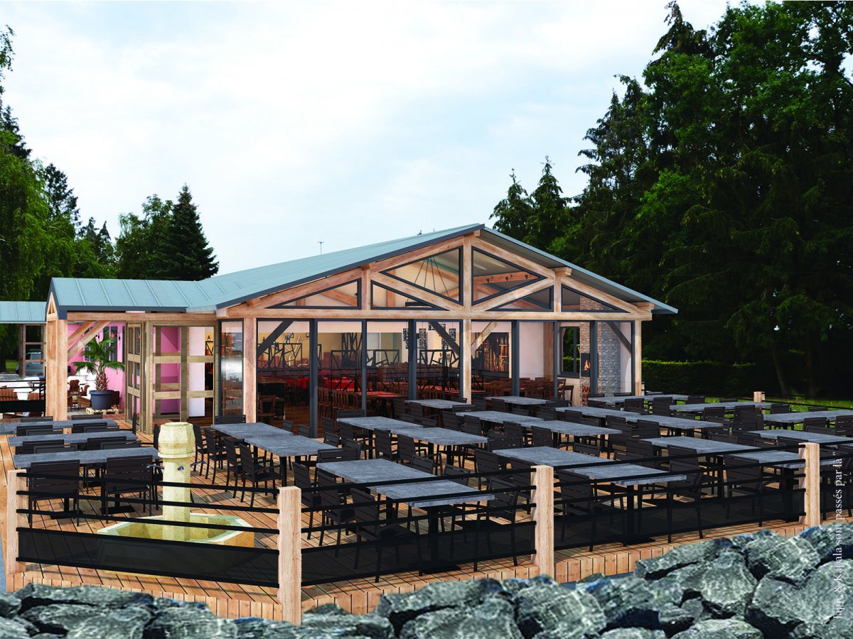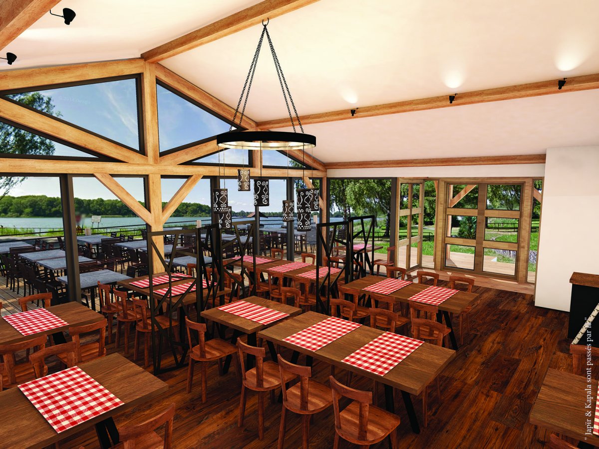 Extension d'un restaurant situé au bord d'un lac. Afin de profiter de la vue, nous avons aménagé un grand espace terrasse et de grandes baies-vitrées. Nous avons également retravaillé tous les espaces intérieurs au bâtiment.