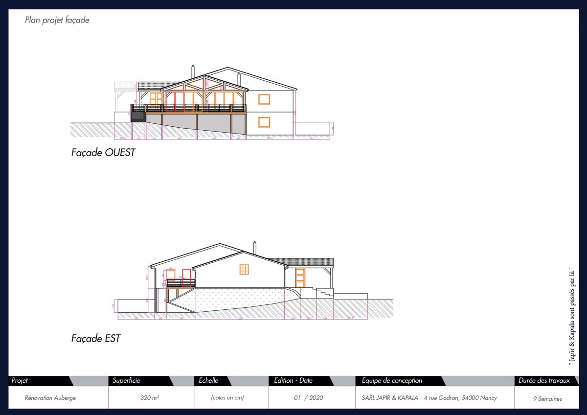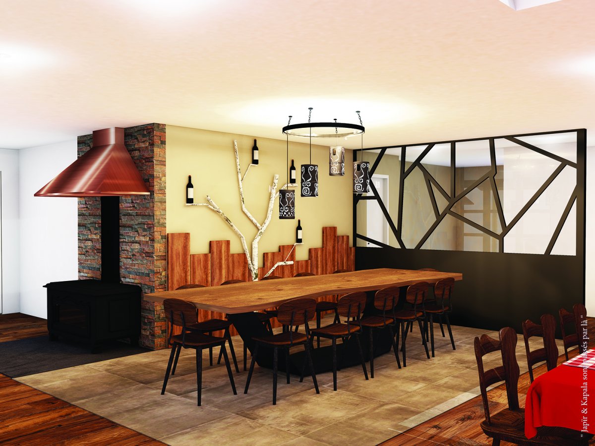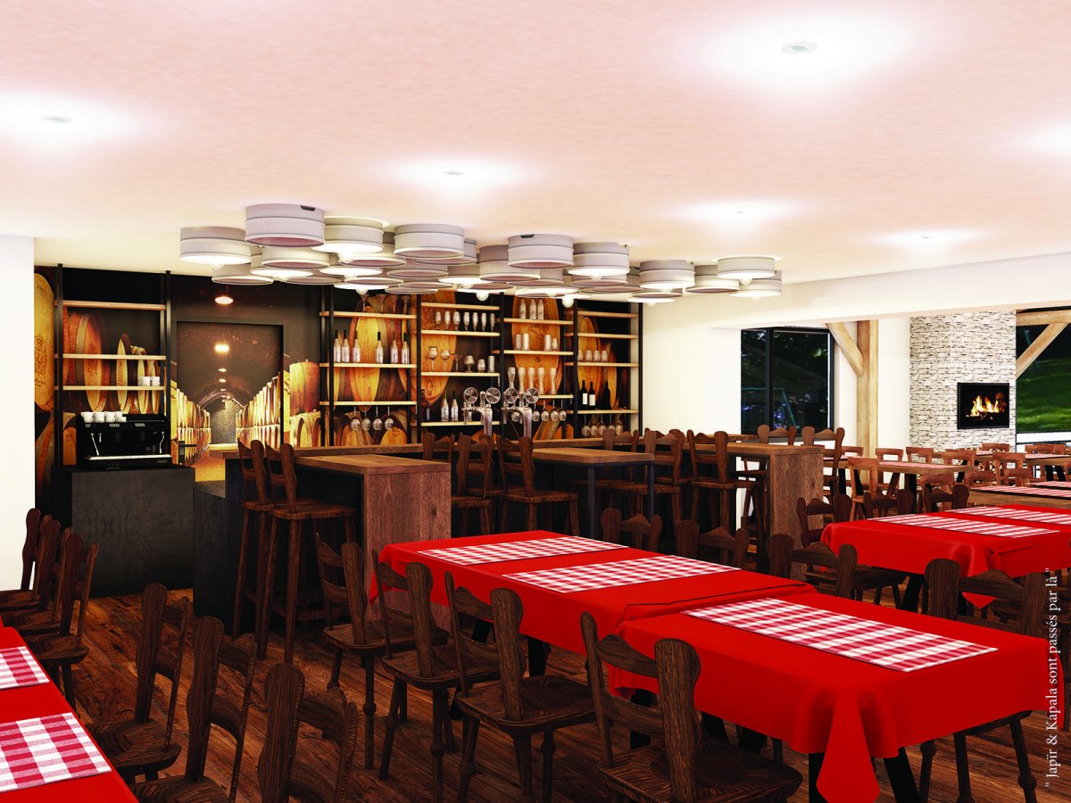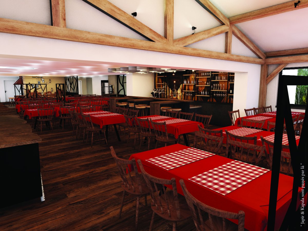 Extension d'un restaurant situé au bord d'un lac. Afin de profiter de la vue, nous avons aménagé un grand espace terrasse et de grandes baies-vitrées. Nous avons également retravaillé tous les espaces intérieurs au bâtiment.