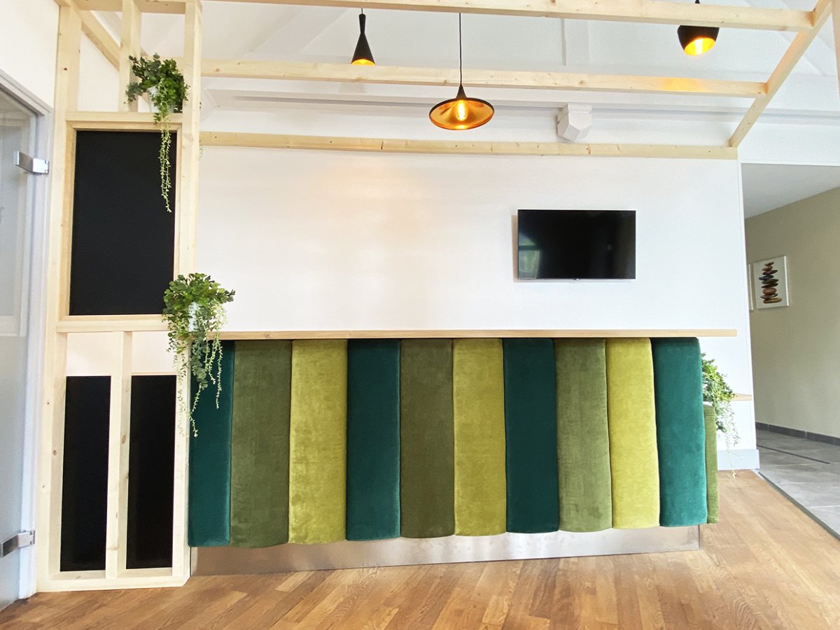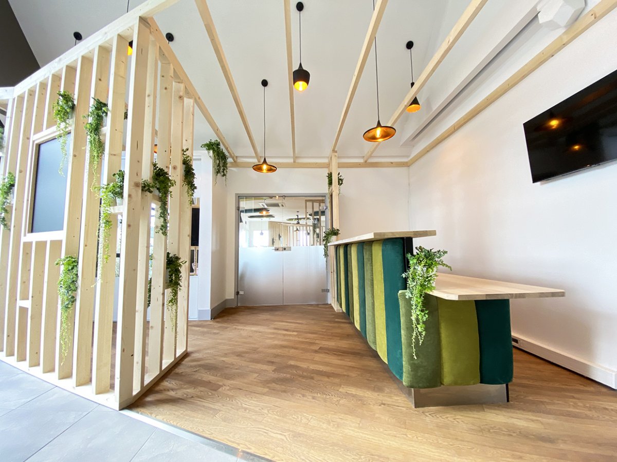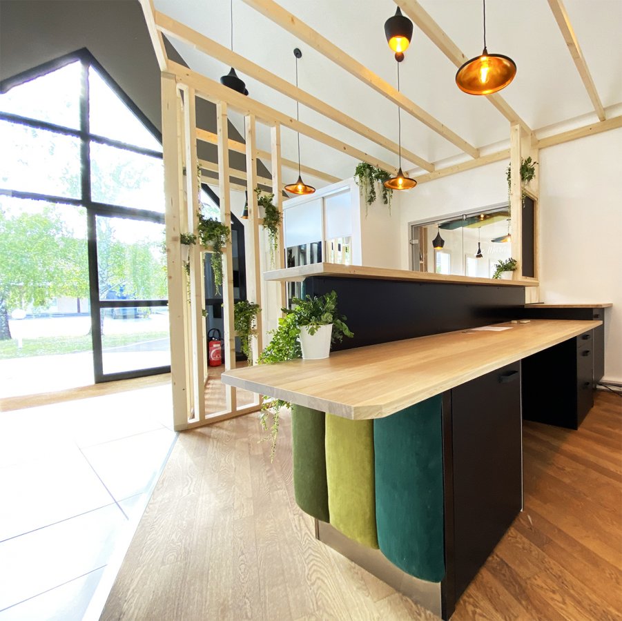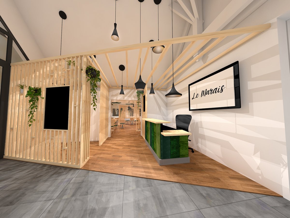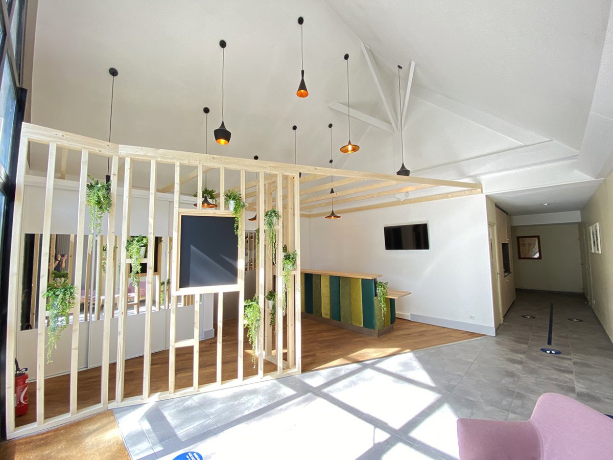 Aménagement et rénovation de la salle du restaurant d'un hôtel Kyriad. L'ancienne décoration étant impersonnelle nous avons homogénéisé la décoration sur une gastronomie biologique.